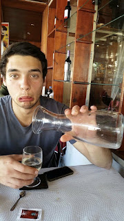 Pesca feita, hora de ir almoçar. Fomos almoçar num tasco onde se come como deve ser: Bom e Barato! Não preciso dizer muito mais, porque nota-se bem a fome com que o Grigas estava! :)