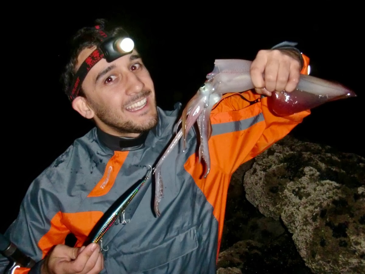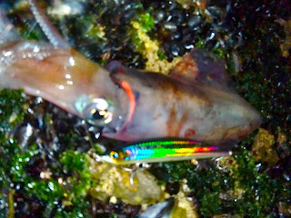 A surpresa veio quando chegou à nossa beira e fomos recolher... Uma valente lula interessou-se pela Saltiga Laser Sardine e veio para fora, dando-me mais uma espécie nova capturada!