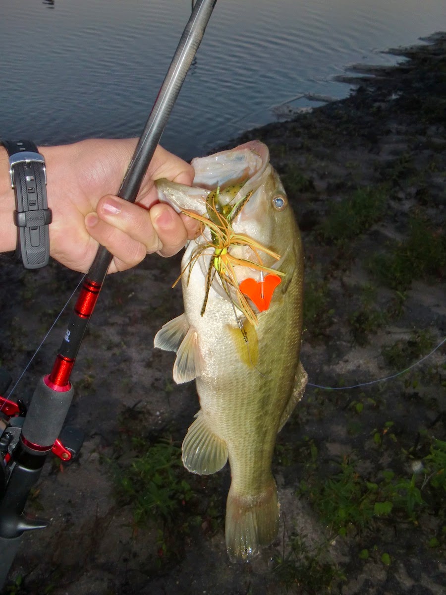 Já rendido à derrota, começo a regressar e ocorre-me colocar o buzzbait (o mesmo de tantas outras pescas!) já que estava uma ligeira brisa que mexia a superfície da água.
