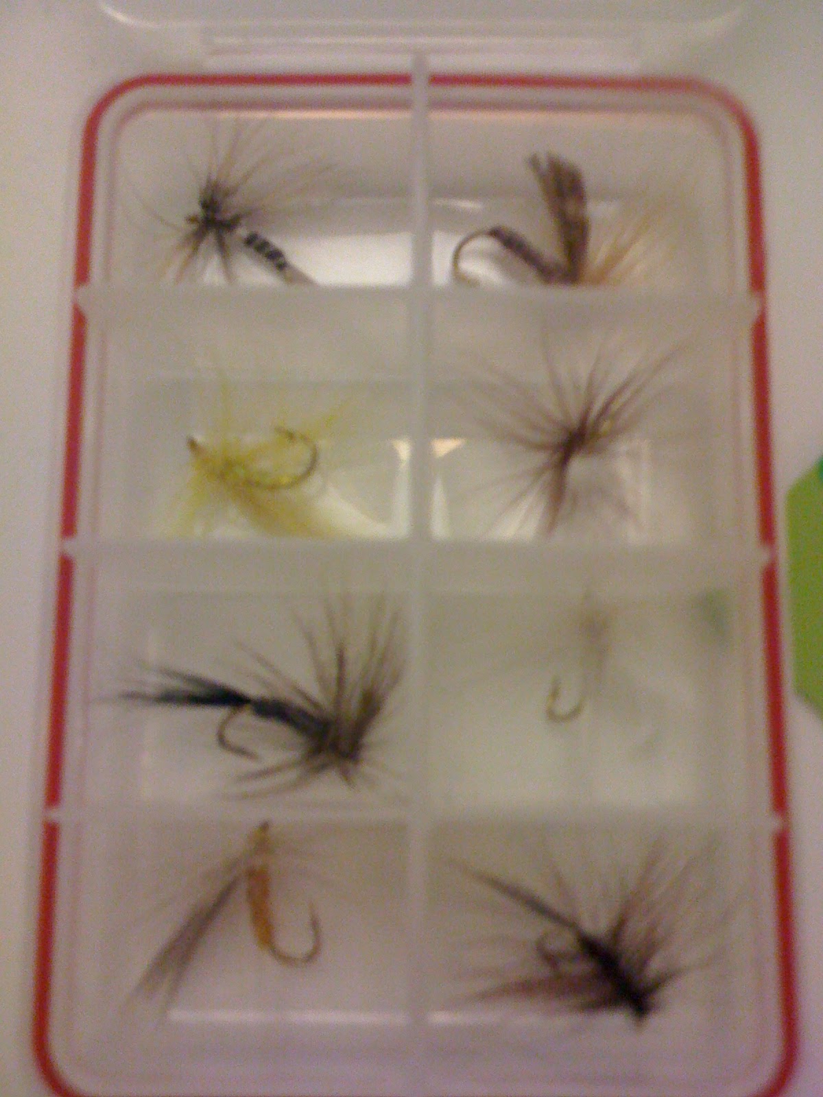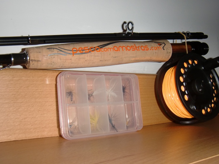 Traz o básico para quem quer se iniciar nesta modalidade (como eu), a cana, carreto, fio, leader cónico e 8 plumas secas. A minha ideia é deixar as plumas em casa e treinar os lançamentos numa zona aberta e sem movimento. Eventualmente, quando o tempo quente voltar, poderei fazer umas investidas num ribeiro ou lagoa, mas até lá, treinar treinar e treinar!