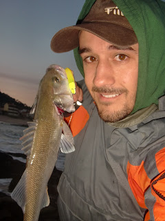 A chuva fazia das suas e de longe a longe, lá pingava qualquer coisa, mas isso não mete medo. Insisti um pouco numa zona com alguma espuma e encontrei um jovem robalo que me veio dar as boas vindas a Viana :)